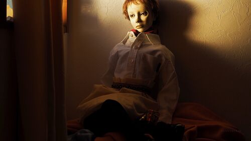 キッズ用のシャツを着せてみた。 ショートカットに白いシャツ。 鬱屈した気持ちを抱えて座り込む minor poet のようだ。